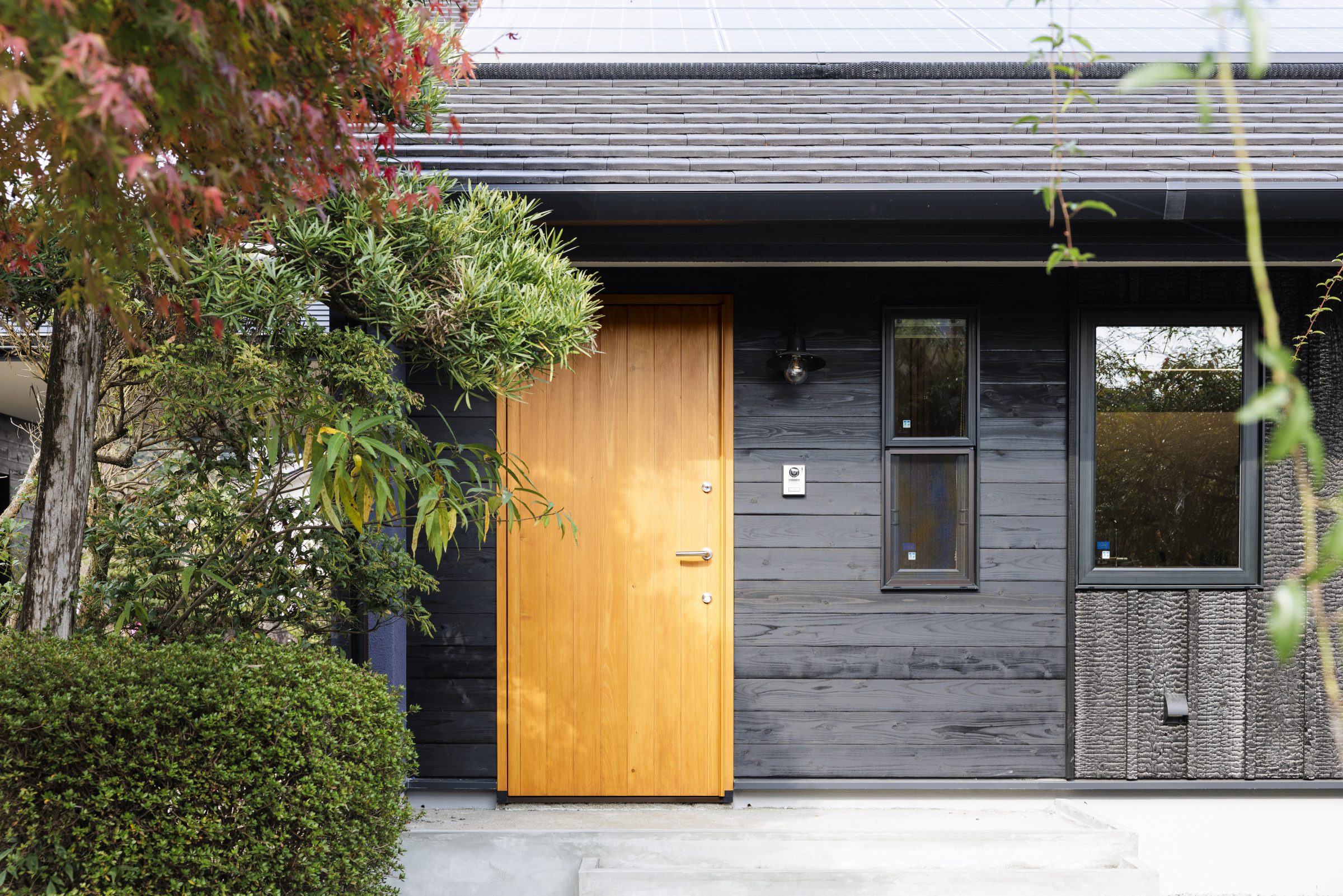 □外壁の一部に焼杉を使った、周囲の自然と調和する美しいたたずまい