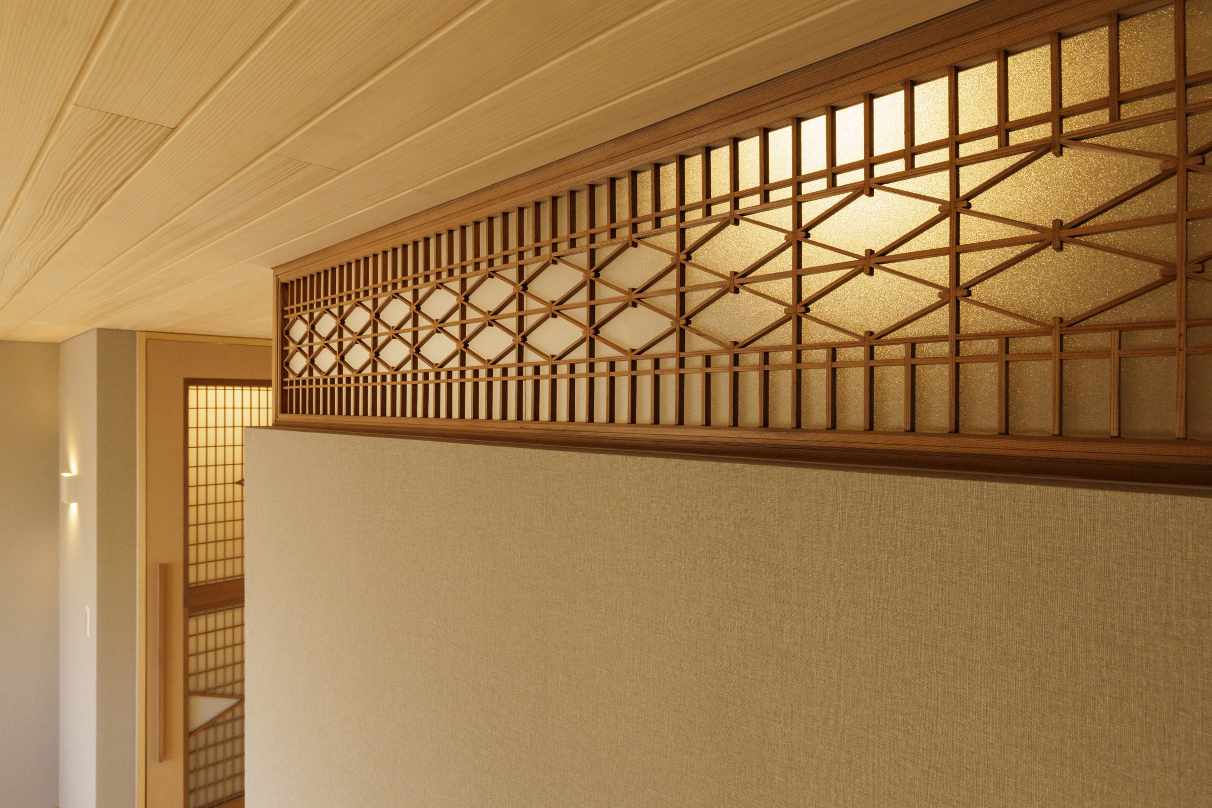 □来客用玄関は客間とセットでスムーズ対応。普段は引き戸を開けてリビングの一部に