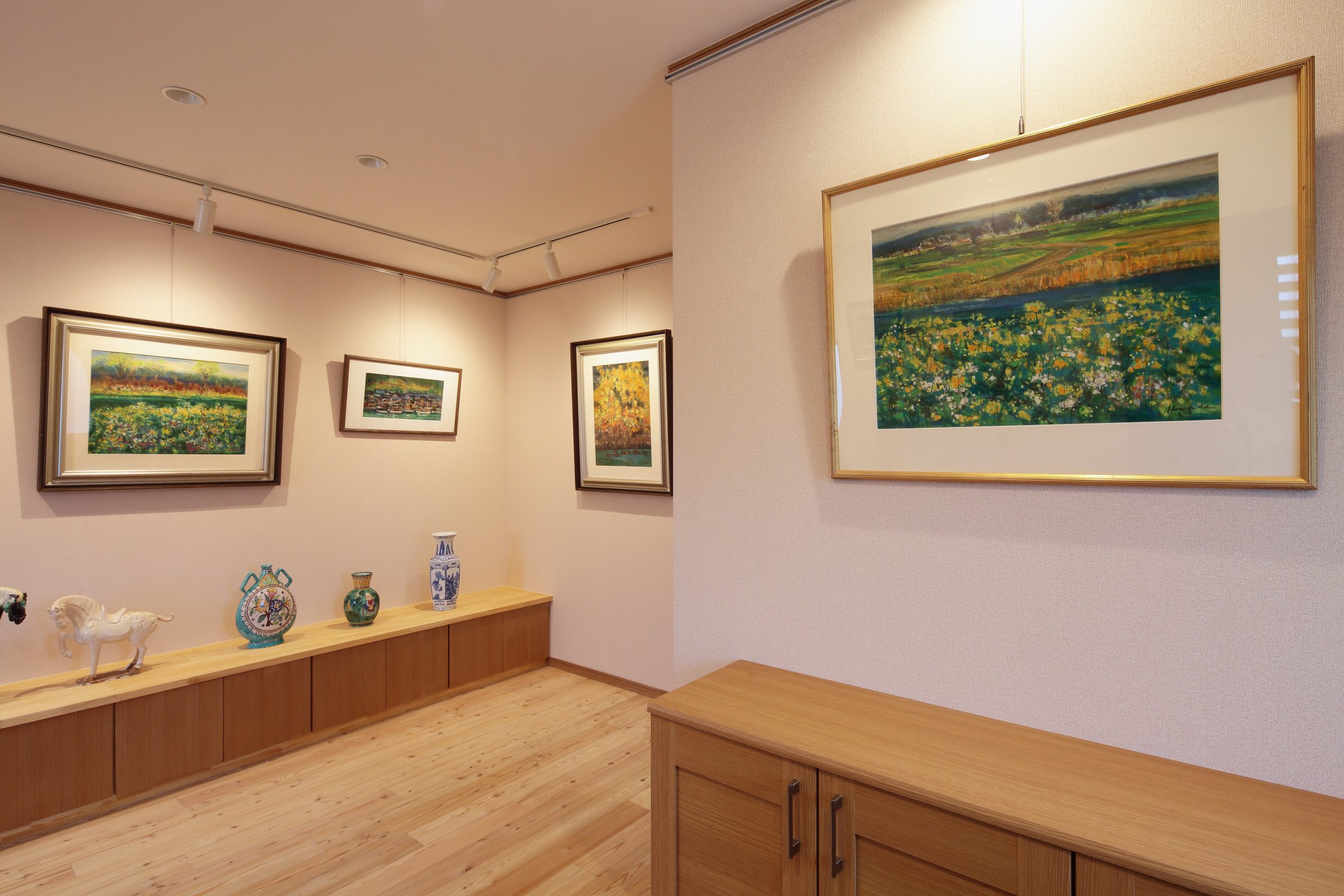 玄関から入ってすぐのスペースを私設ギャラリーに。