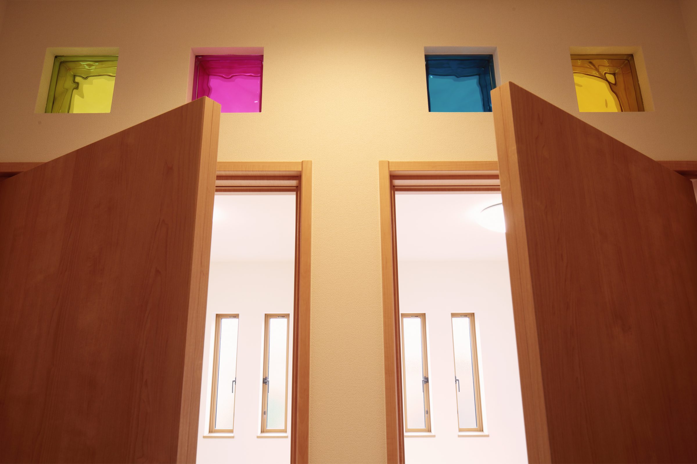 子ども部屋の入り口に設けたカラフルなガラスブロックは