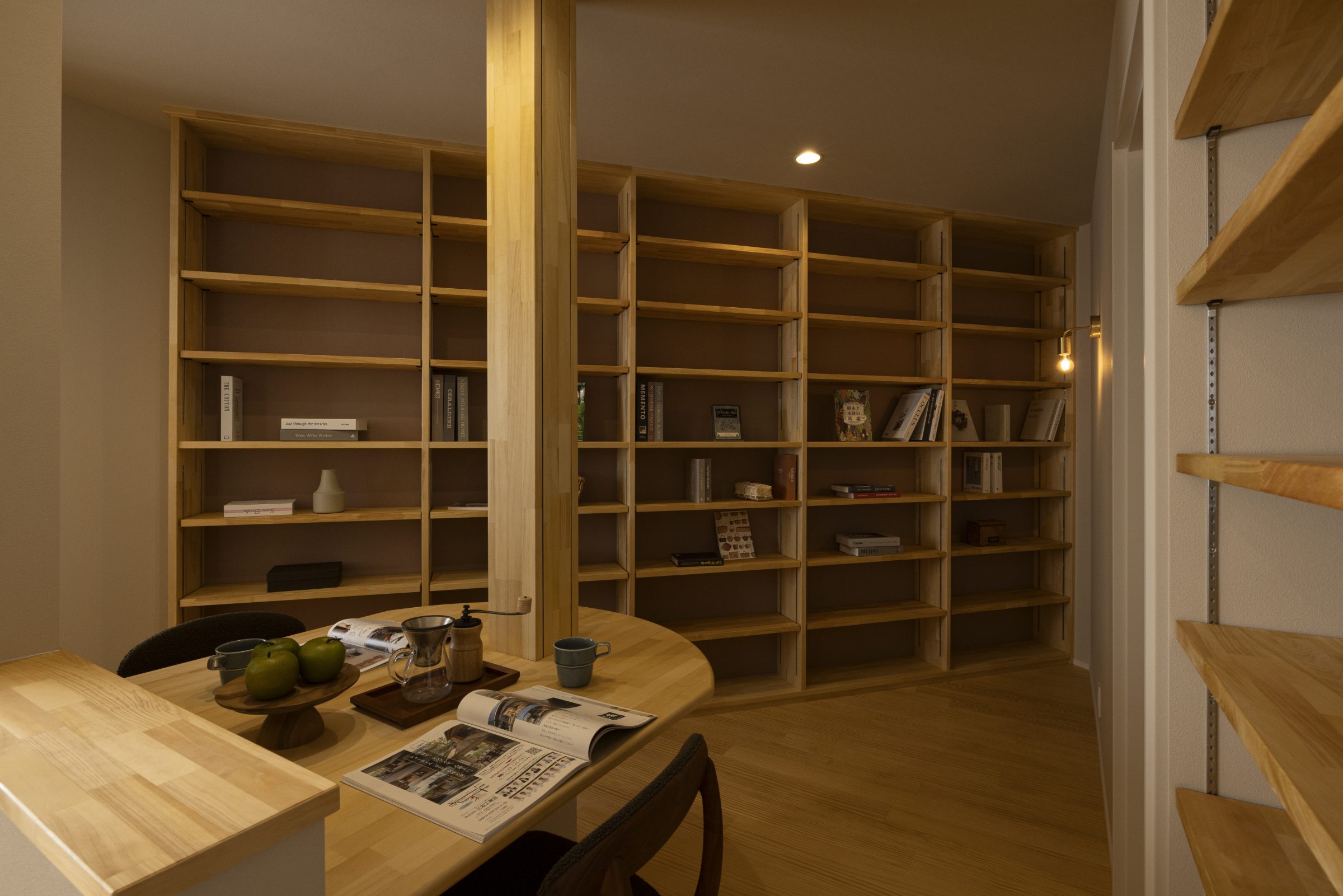 壁一面に本棚を造作して、まるで図書館のよう。