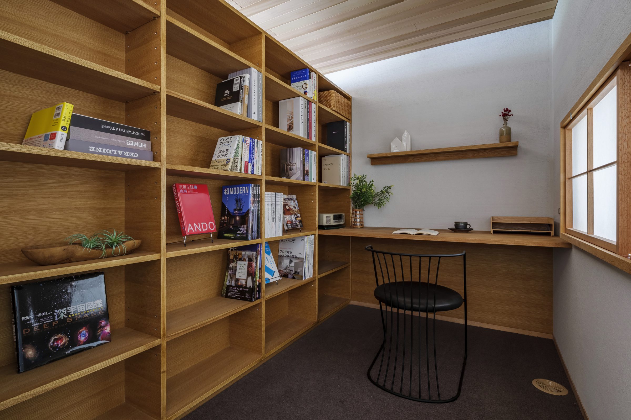 読書好きなご主人のために、造作の本棚と机を備えた書斎をはじめ、