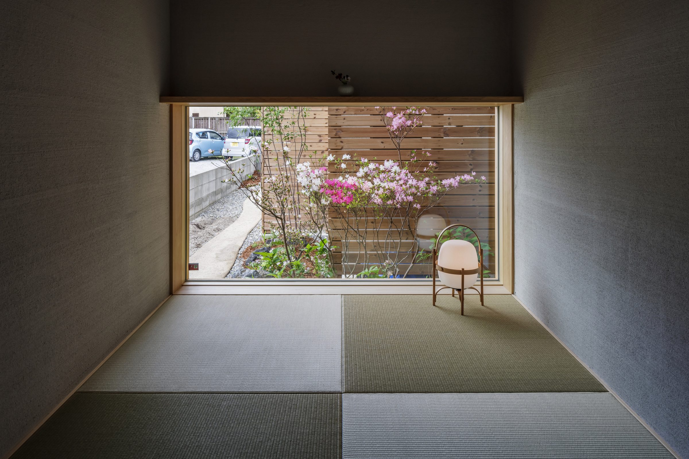 玄関を開けるとすぐに目に入るのが、坪庭を携えた畳コーナー。