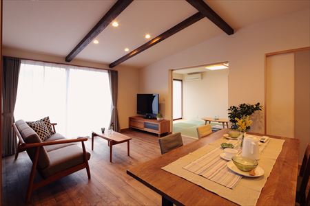 広縁があった位置にキッチンを移動し、日当たりの良い南側にオープンなリビング・ダイニ