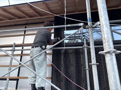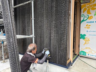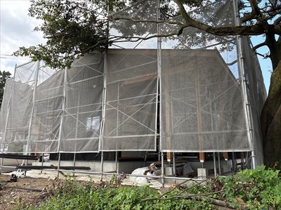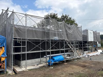 足場が掛かっていて「焼杉」の外壁が見えませんが、