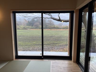 南阿蘇の広い土地に建つ、山々の絶景を取り込む、小さな平家。
