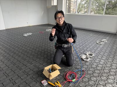 配線作業をしている重浦電工:重浦さん。