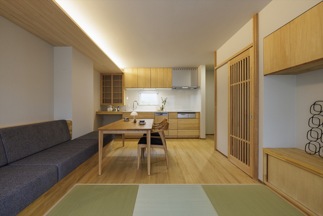 昭和43年に祖父様が建てられた平屋をお孫さんが受け継がれ、間取りの改修だけでなく、断熱・遮音・耐震性能の向上など、令和の今の暮らしに合ったリフォームを行いました。