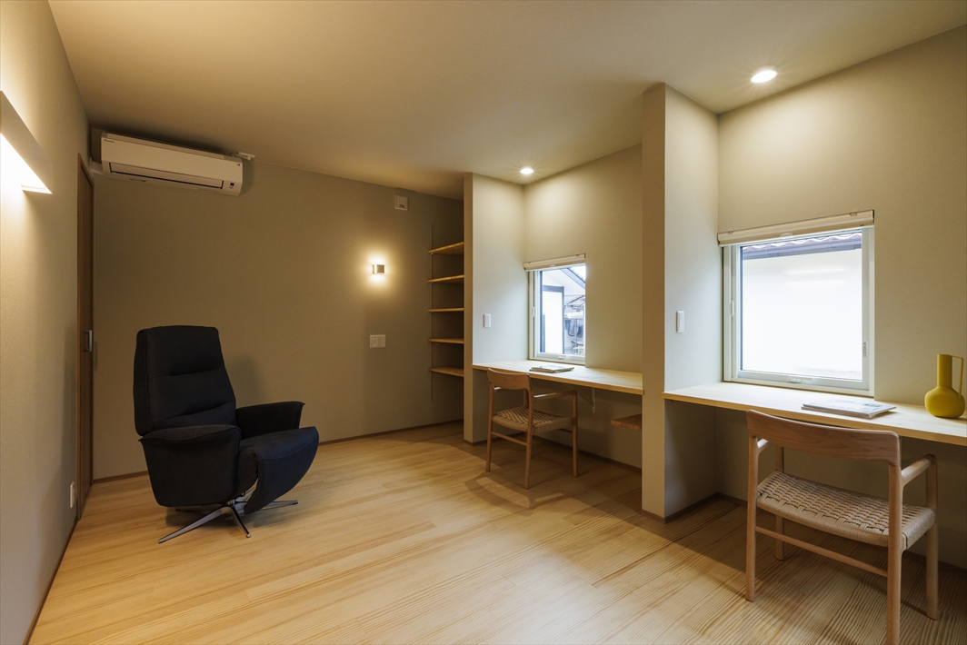 そこで、LDK+中庭をひとつながりの間として、可変性ある使い方で大人数でも対応できる昔の座敷のような存在に。一方、書斎や庭のベンチなど各所に個でも落ち着ける場所を設けています。また、断熱・遮音・耐震性能の向上だけでなく、湿気対策も施したことで、新築かと思うほどの快適な住まいとなりました。