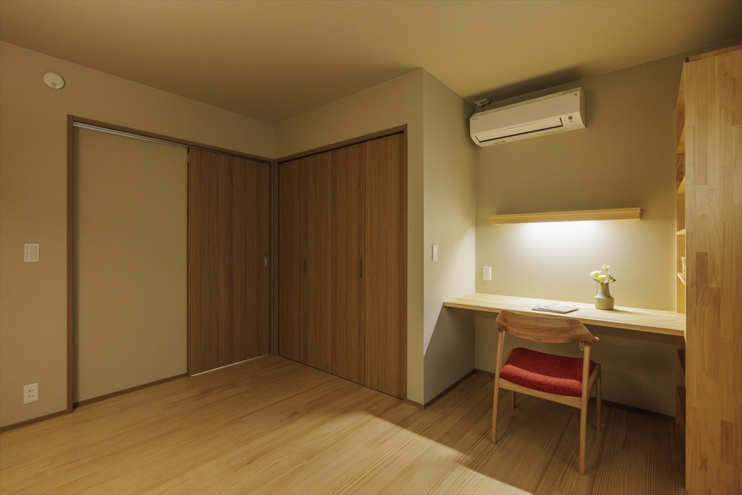 想い出の家の外観は損ねることなく、内部は断熱・遮音・耐震性能の向上に加え、湿気対策も万全に。LDK+中庭をひとつながりの間と捉え、大人数でも対応できる可変性ある間取りと、書斎や庭のベンチなど個でも落ち着ける場所を各所に配置。通路も兼ねる大容量WICなど、無駄のない空間づかいも工夫しました。