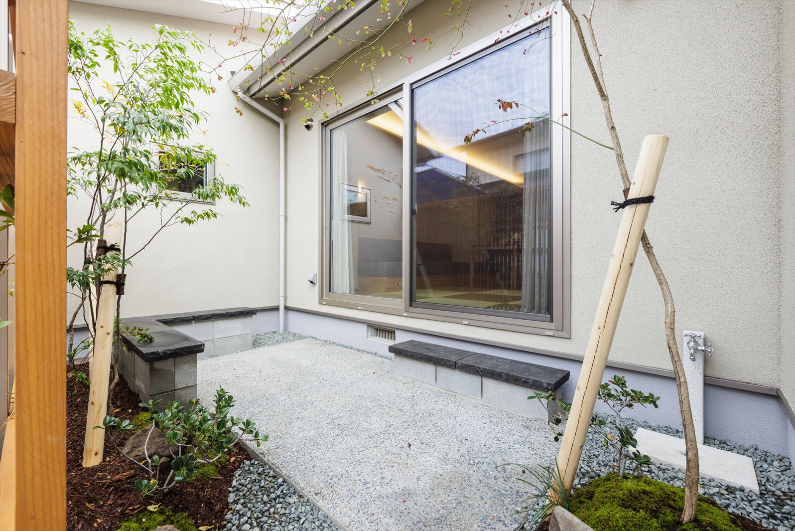 ◆造作ベンチ付きで屋外パーティーも出来る中庭